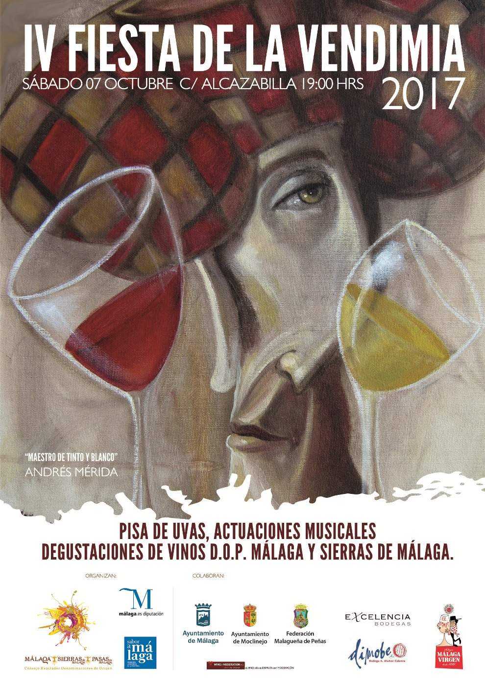 El Consejo Regulador de las Denominaciones de Origen Málaga, Sierras de Málaga y Pasas de Málaga celebrará con el apoyo de la Diputación Provincial de Málaga, la cuarta edición de la Fiesta de la Vendimia, un evento que se realiza para poner en valor el trabajo realizado por los viticultores y bodegueros de la provincia de Málaga, y que contará con una simbólica pisa de uvas, actuaciones musicales y degustaciones de vinos de las Bodegas Dimobe, Excelencia y Málaga Virgen –El Pimpi.