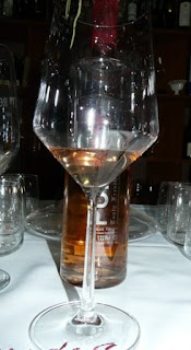 Visualmente carece de atractivo, denota los rasgos de su singular elaboración, donde los reflejos rojos y vivos, se han sustituido por tonos cebolla y pálido. En nariz se muestra muy aromático, con derroche floral, que muestra su elegancia -rosas, flores marchitas-, acompañado por una nota cítrica de anaranja amarga que aviva su estado. La oxigenación le aporta mayor frescura e intensidad en sus notas, donde aparecen notas melosas y de piel de melocotón. En boca demuestra su potecial decrecimiento, gracias a su elaboación, resultand un caldo aún por equilibrar, falto de reposo, con raza y carácter que debe silenciar unos meses en bodega, para adelantarnos signos de su pronto estado de finura y elegancia.