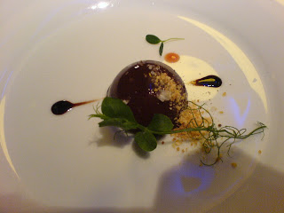 Postres correctos, sin pasarse. Una sopa de tomate con sorbete de albahaca, ligera y refrescante y un browni de chocolate con fruta de la pasión que ya habia probado en La Sucursal.