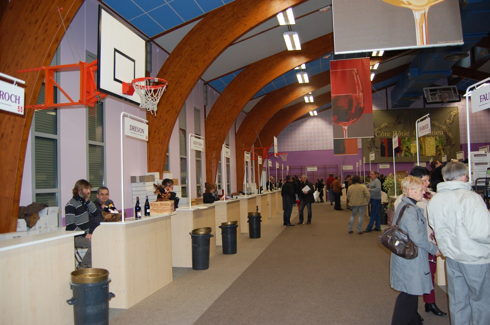 El día 21 de enero acudimos a la inauguración del Marche aus Vins, se celebra en el polideportivo del pequeño pueblo de Ampuis, una iniciativa genial con 83 ediciones a sus espaldas. En este evento se dan cita durante 4 días 60 productores de la zona los cuales ubican sus stands en el pequeño pabellón, dan a catar las últimas añadas de los vinos que elaboran y en algunos casos llegan a vender en esos 4 días la práctica totalidad de la producción anual de la bodega. A la feria acuden aficionados no solo de todas las regiones del país vecino sino enamorados del vino llegados de distintas latitudes del planeta. Me parece una iniciativa genial, de la que se deberían hacer eco los productores españoles y propiciar la realización de eventos de este tipo (más en los tiempos que corren) que les permitan además de dar a conocer sus vinos, vender una buena parte de su producción directamente al consumidor final.