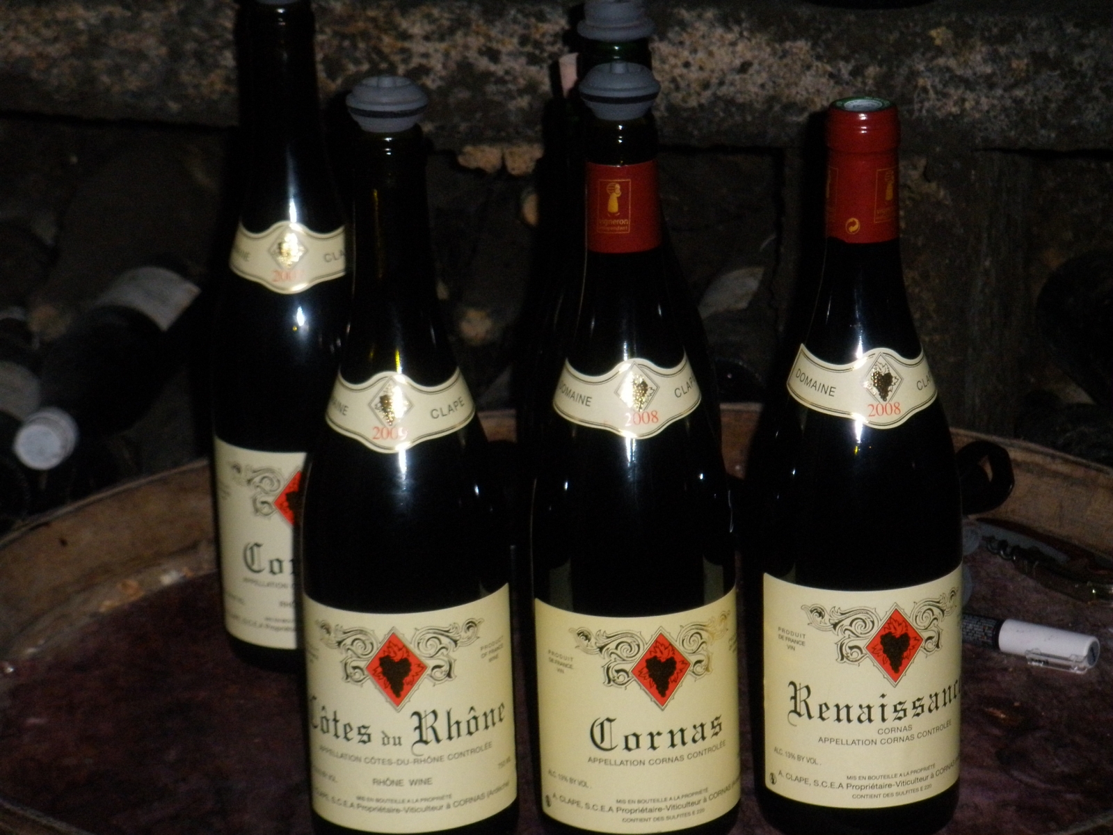 La fiesta continuaba y lo hacía de la mejor manera posible, el sábado a la mañana, teníamos cita con uno de los grandes, con uno de esos productores que no suelen salir en la foto, de los que casi todo el mundo habla bien, de los que para algunos es el modelo a seguir, uno de los productores que nos hizo esbozar una sonrisa en el 2010 al degustar alguno de sus vinos, habíamos quedado en Auguste Clape, en Cornas. Clape es una leyenda en la región, posee viñas en alguno de los mejores pagos de Cornas, la zona vinícola más meridional del Ródano norte y más cálida a su vez, y elabora unos vinos de corte clásico y desde mi punto de vista más adaptado al paladar de vinos tintos español que sus vecinos de Hermitage o Cote Rotie. Tengo que decir después de catar muchos vinos en los dos primeros de días de viaje por todo el Rodano Norte, que sin lugar a dudas me quedo con los vinos de Cornas, me cautivaron los vinos de Alain Vogue y de Clape. Además cuando paseas por el pequeño pueblo y sobre todo por el anfiteatro natural salpicado de viñedo que rodea esta sencilla población tienes la sensación de percibir la personalidad que después descubres en el interior de una copa de syrah.