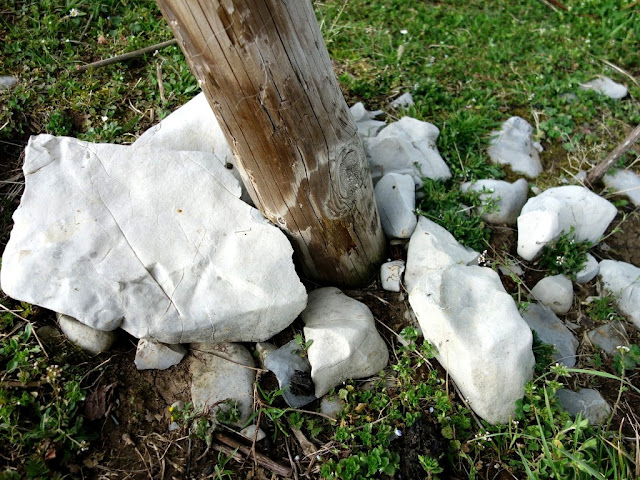 cinco cms. de suelo y enseguida sale la caliza - con muchos fósiles - descarbonatada con pH entre 5,5 y 5,8,