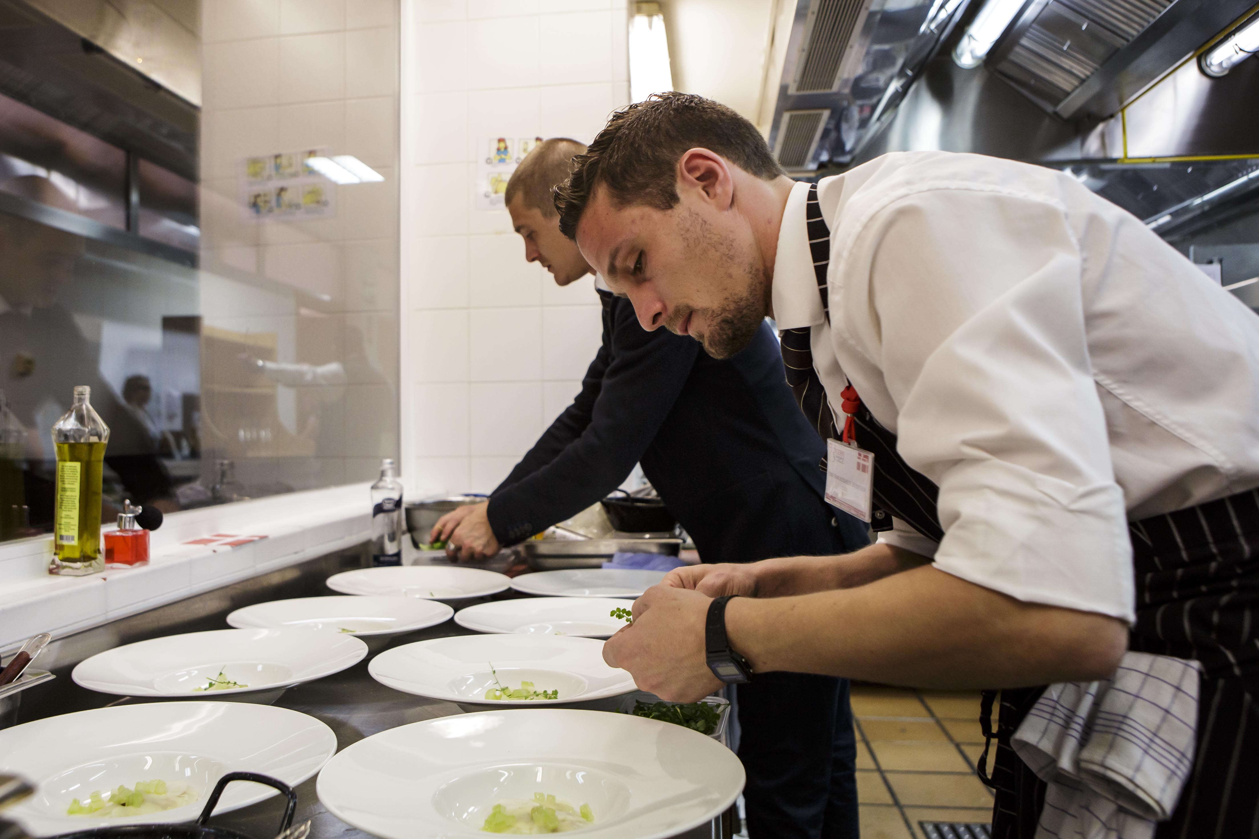 Un menú compuesto de dos platos y un postre maridados con tres Vinos de Jerez les ha valido la máxima puntuación frente a los otros seis países participantes: vieiras cruzadas en corteza de pan de centeno salado, con Fino Valdivia; pulpo estofado en grasa de pato y asado en aceite de almendra, con un Amontillado de Barbadillo; y de postre, helado de leche, praliné de avellanas y café, con Pedro Ximénez VOS de Tradición.
