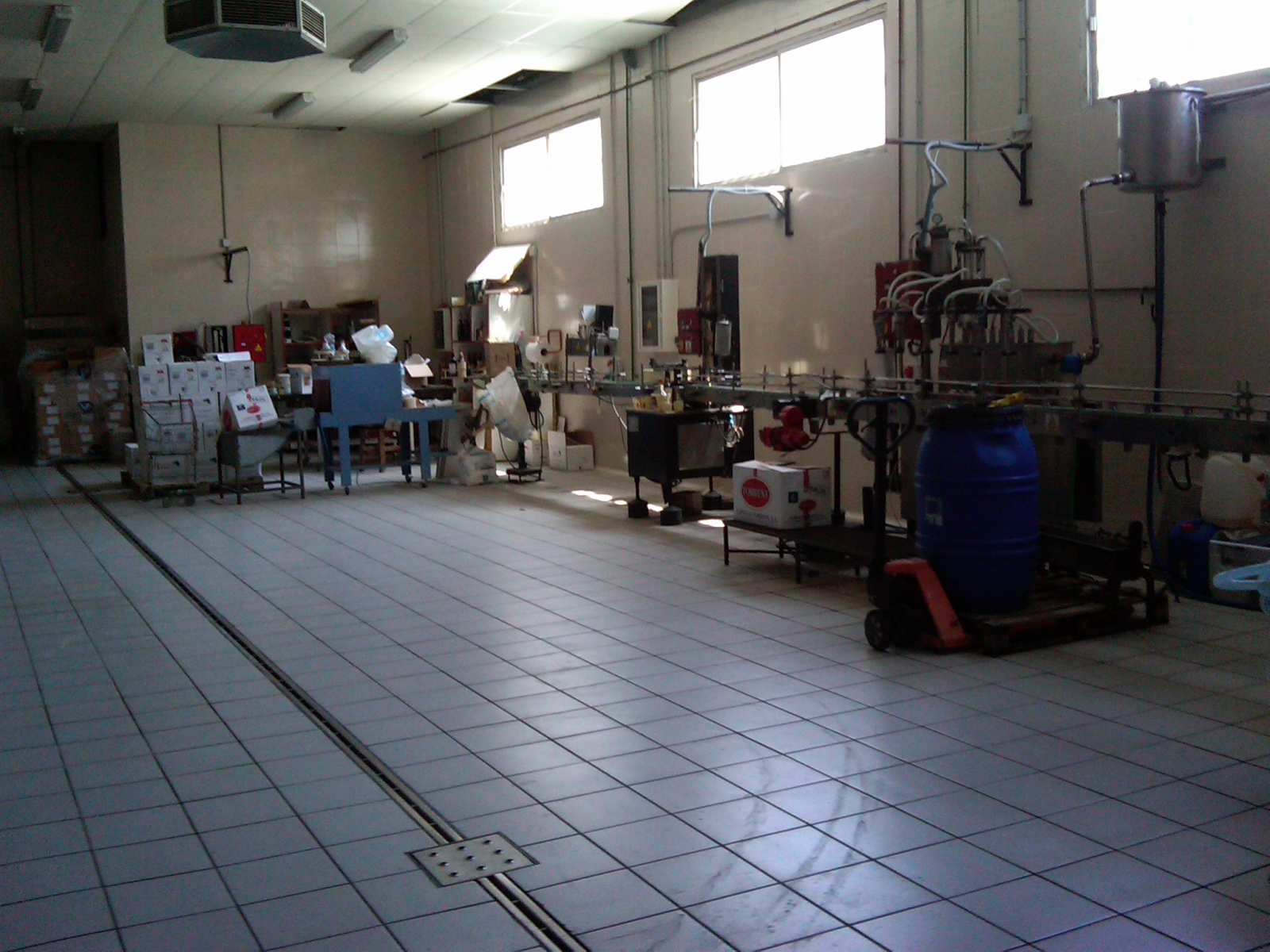 Nos introducimos a la sala de elaboración propiamente dicha, me muestran la prensa fabricada a medida para las prensadas necesarias de la vendimia y diferentes elaboraciones, en el resto de la nave se reparten depósitos de poliéster con los modernos de acero inoxidable, "...estamos esperando un crédito del ICO para la renovación de depósitos" ...malos tiempos para la lírica como diría Germán Coppini. Una de las cosas que más me llamo la atención fue la técnica de elaboración del "Arrope" de donde del vino blanco obtenido de la ultima presada se pasa a una enorme "cazuela" que se calienta al baño maría para deshidratar el vino y que solo quede algo parecido a un caramelo de color oscuro que se denomina Arrope y se mezclara con los vinos blancos de primera prensada y flor para que les de el color típicamente oscuro de estos vinos obtenidos de uvas blancas. Todo un descubrimiento para mi traducido en orgullo para ellos el poder demostrar y enseñar a un aficionado de esto de la vinicultura esas técnicas especiales de elaboración que siempre aparecen al final de los libros de enología y que nunca hacemos caso. ¡¡No sabemos lo que nos perdemos!!, yo he abierto la puerta, he asomado la cabeza y he visto ante mi un mundo nuevo en esto de las vinificaciones.