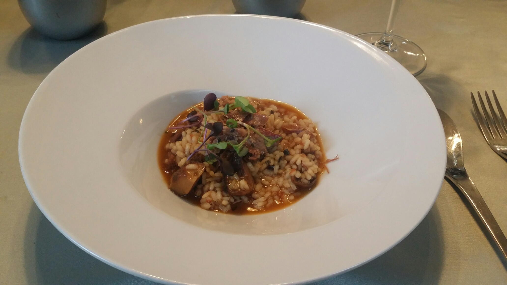 Arroz de pato , rebollones y espárragos