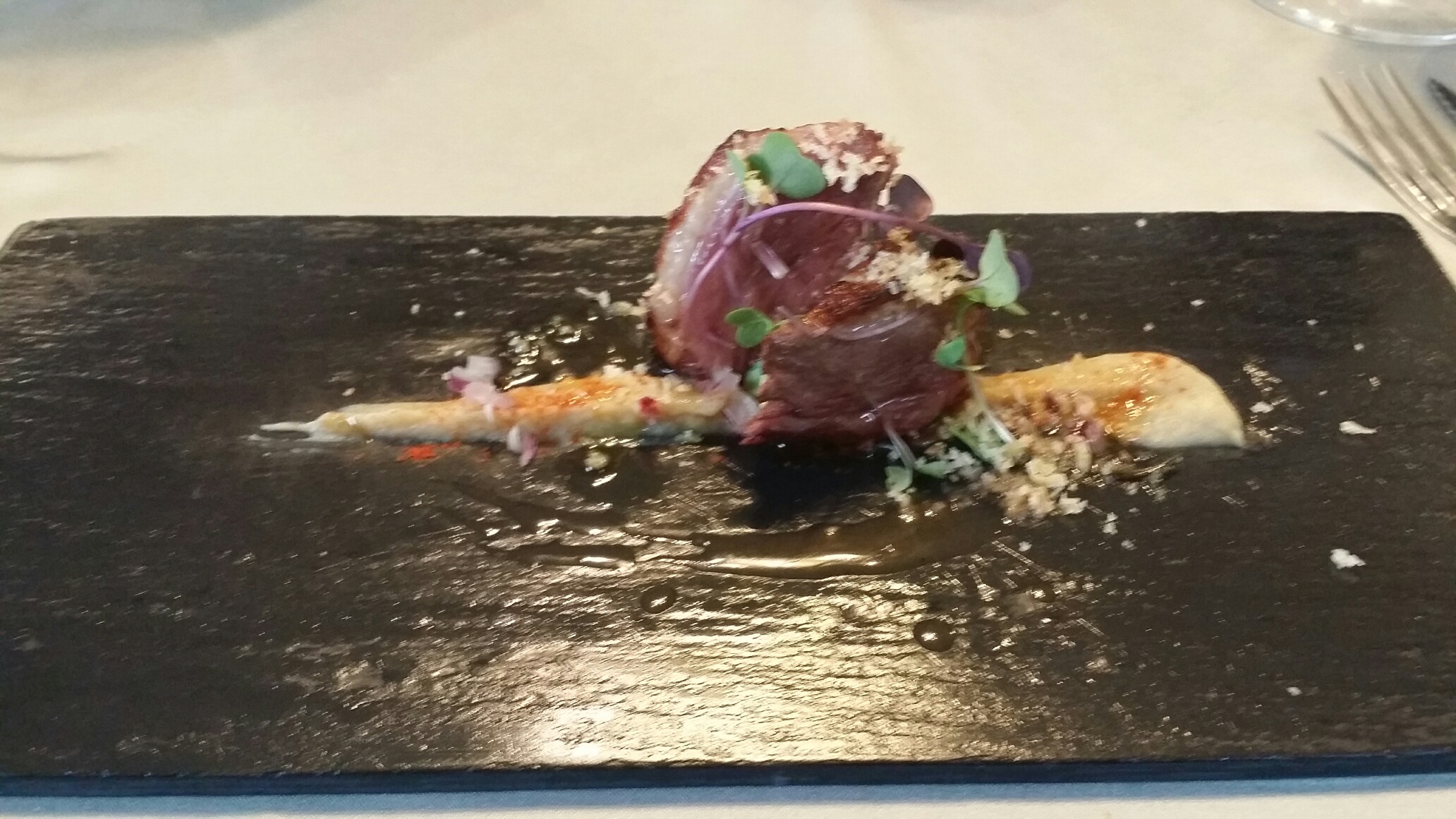Quizas no sea el restaurante más bonito, ni el mas glamuroso, no es el restaurante de moda ,ni el propicio para los selfis . Aquí ni se aparenta ni entras en el circuito del glamour o la fuerza mediática. Pero si que es autentico, diferente y honrado. Si que es , seguro que lo es , un restaurante donde los detalles logran unir las ideas con la materia prima y dan lugar a detalles que unen elegancia, profesionalidad, sabor y te abocan a la frescura que se siente cuando te enfrentas a la autenticidad. Y por encima de todo , es un restaurante diferente . Y eso ya es mucho....