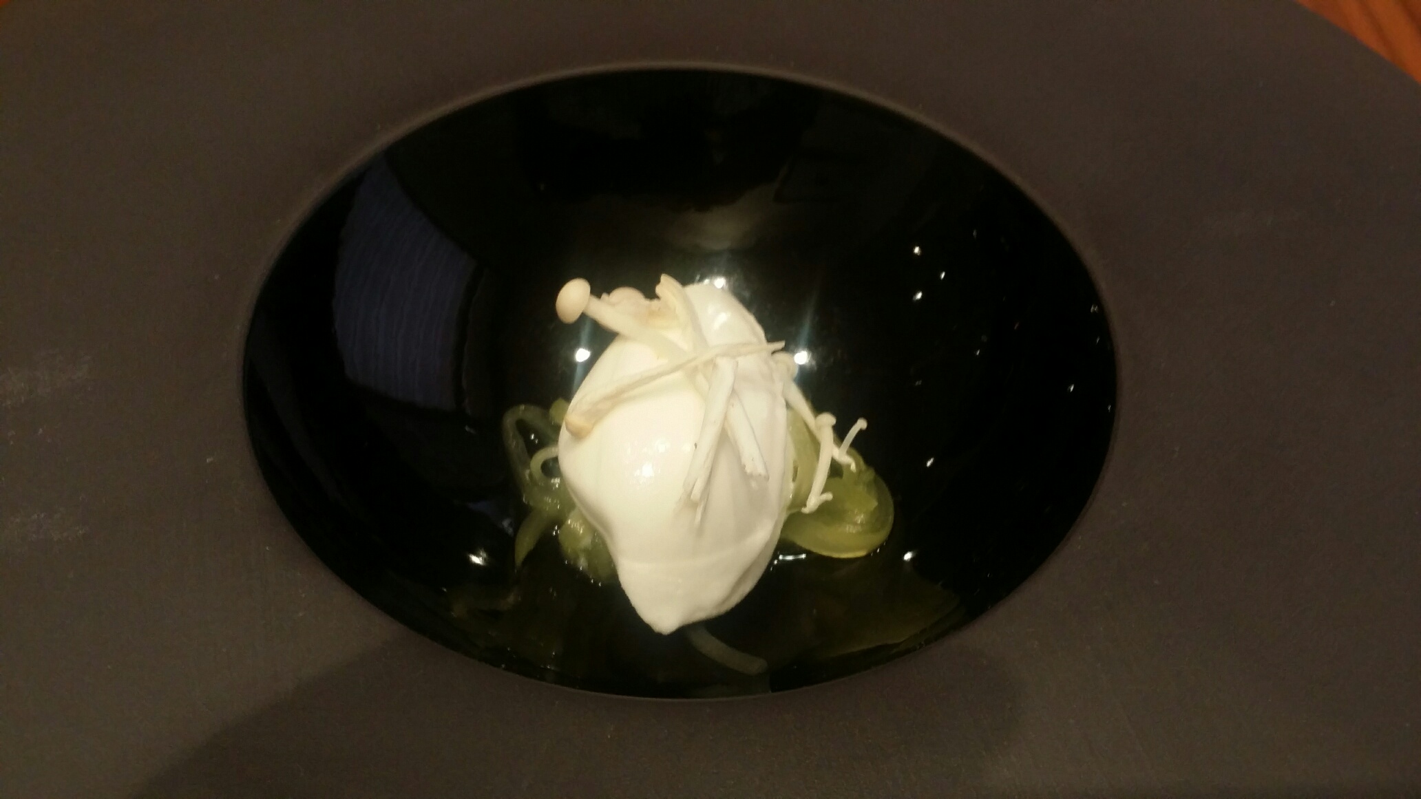 Perfecta la cocción de las cocochas, suavidad en la espuma. Otra vez , un carrusel de sabor, la cococha manda al principio , luego emerge suavemente, de menos a mas , la coliflor y acaba con un punto picante del ajo. Todo con suavidad . Elegancia
