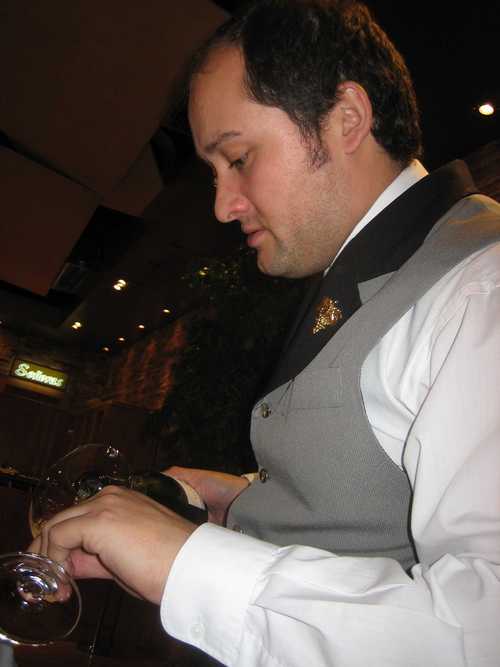 Y , como sucede en los grandes restaurantes , todo ese torrente de personalidad llega al comensal a través de un servicio franco, directo, amable y , por encima de todo , profesional. Te hacen sentirte cómodo y relajado. La hospitalidad forma parte de su carácter y buscan , por encima de todo , intentar lograr la satisfacción del cliente. Y dentro de la sala , no se puede olvidar a Alberto Redrado. Es el encargado de manejar su grañidísima (en extensión y en calidad) carta de vinos y licores. Si larga es en referencias todavía mas considerable son los conocimientos de Alberto. De todos sus vinos te puede hablar de la historia de la bodega, de las añadas, del suelo de las vides, de la elaboración , de las diferencias con bodegas cercanas……..Es mas que una enciclopedia. Es una sabiduría desmedida, ingente , colosal y pasional. Se nota que vibra con cada botella y traslada la historia de cada botella para que se entienda que no sólo detrás de los platos y alimentos existe un trabajo, una ilusión y una esperanza. Aquí se conjuga perfectamente la comida y la bebida. Es un restaurante en el que se entiende que el fruto de un trabajo , ya sea en el plato o en la botella, se basa en anhelos y fantasías en términos iguales. Aqui comprendes porque determinada cepa, determinado pago o determinada marca es lo que es y porque conjuga con lo que comes.