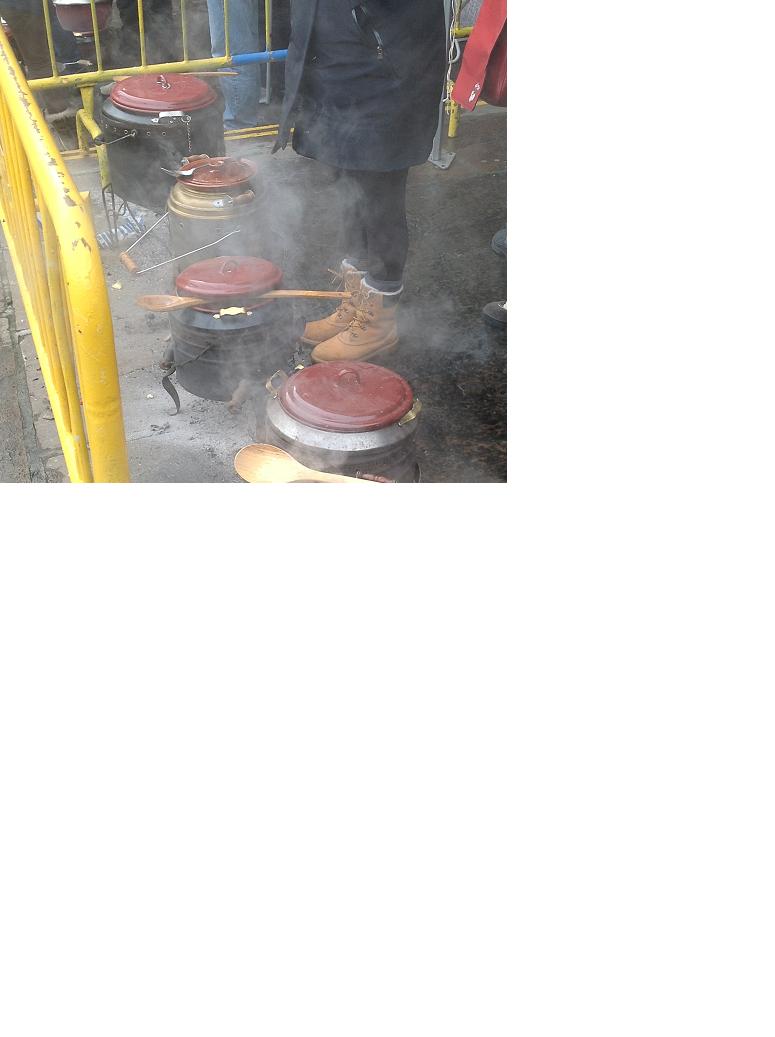 De entrada entablamos conversación con los miembros de la peña de los Tuttis, que tienen instaladas unas cuantas ollas ferroviarias, unas para el concurso, otras con un guiso de alubias y unas terceras con un caldo, que ofrece a todo el que se acerca a donde están instalados.
