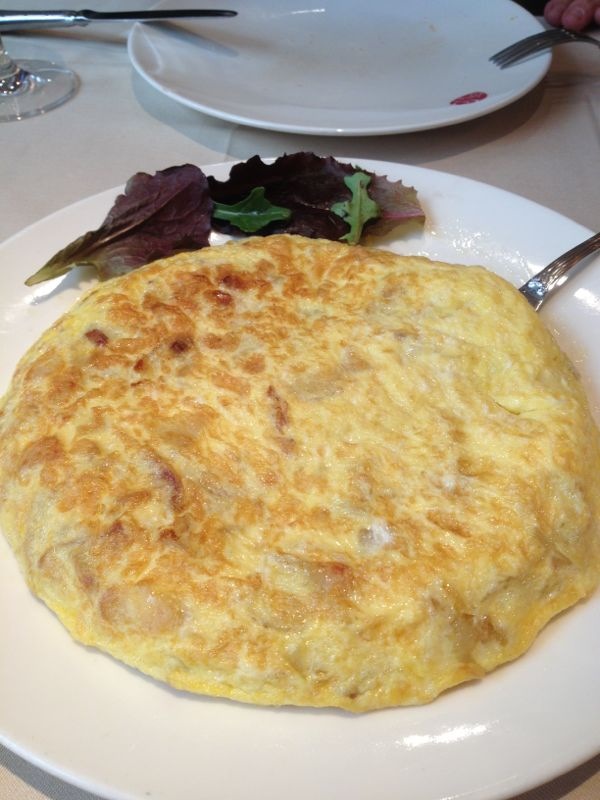 Cuando el camarero depositó la tortilla en la mesa recién hecha, nos aconsejo esperar dos minutos en empezar a comerla, no sé el motivo y me he quedado con ganas de saber el mismo.