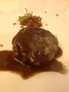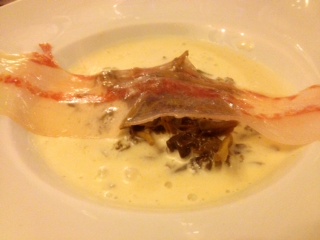 Angula de monte con espuma de trufa y papada: Un plato inmejorable, con todo lo que puede entrañar la expresión. Los comentarios unánimes al respecto con un silencia completo mientras se degustaba el plato, lo cual es signo inequívoco de su nivel.