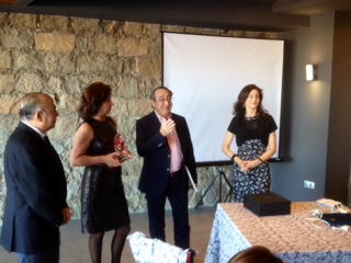 En la foto de izda a dcha, Julio Delgado e Isidora Beotas, ambos de restaurante El Almacén de Ávila, Julio Valles y Elena González-Santacana, en la entrega de la placa por parte de la Academia.