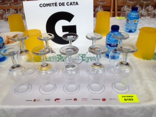 En cada mesa de unas 40 personas , se sirve un tipo de vino de los que van a concursar, me explico, a nosotros nos correspondió el tinto crianza y no catamos todos los de este tipo que se presentaron, pues en concreto el ganador no pasó por nuestras copas, por la referencia que posteriormente he apreciado que tenía el mismo.