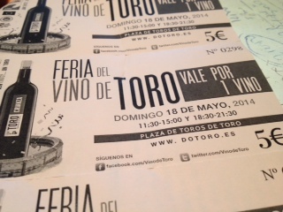 Acceso a la feria por el precio de 5 euros, entregando una copa de bastante buen nivel con la publicidad de DO Toro, para quedarte en propiedad, que da derecho a 5 vinos, pero que en realidad luego no se suelen solicitar y por tanto el número es ilimitado.