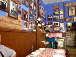 Llegados al local Casa Antón, situado en una calle que termina en tal plaza y a muy pocos metros de la misma. El recibimiento por parte de una camarera es muy cordial y nos acomodados en el comedor de la planta baja. Javier me da la razón en que el entorno es lo que es, pero resulta muy acogedor, con clientela nada ruidosa y que va a lo que va, a comer y hacerlo hasta con cierto silencio en plan respeto a la calidad de lo comido, cuando les sacan los cuartos del lechazo.