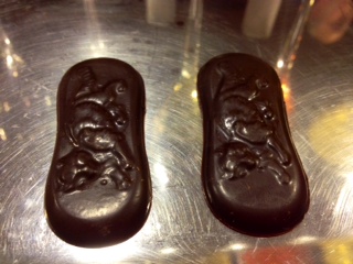 En la foto los dos chocolates, el de la izquierda es el puro de cacao.