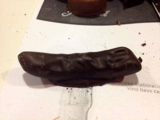 De naranja: piel de naranja confitada con algo de almendra picante con un baño de chocolate negro. Logrando un buen contraste entre el dulzor de la naranja confitada y su envoltura amarga. No se voto en la cata de cavas.