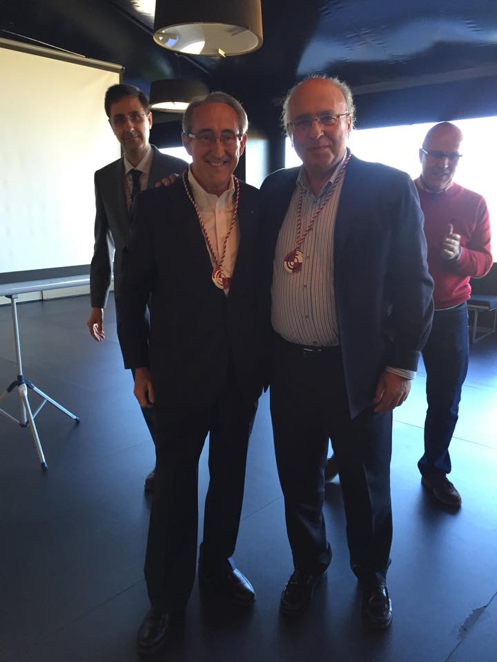 Con su medalla de Academico de número, (J) que le entrego el vVcepresidente Fernando Franco (F)