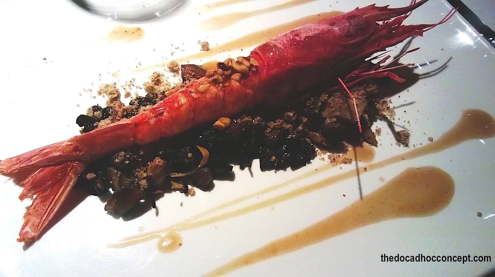 Me senté con la espalda recta para saborear el Carabinero “King size” con boletus y trompetas negras, el jugo de las propias boletus salteadas con armagnac, mantequilla, su jugo de carne y un leve aceite de frutos secos (avellanas). Como podéis esperar de este plato, es para chuparse los dedos (literalmente). El carabinero fresco, sin duda, las setas de temporada, y el maridaje?...un vino generoso (SERENO) de Garnatxa roja catalana en solera 2009 y presentado en botella de 50cl. Sus 15,5% nos dejan recuerdos dulces y jerezanos. Un 10