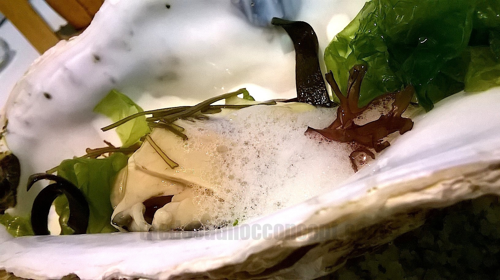 Ostra del Delta del Ebro con plancton y manzana