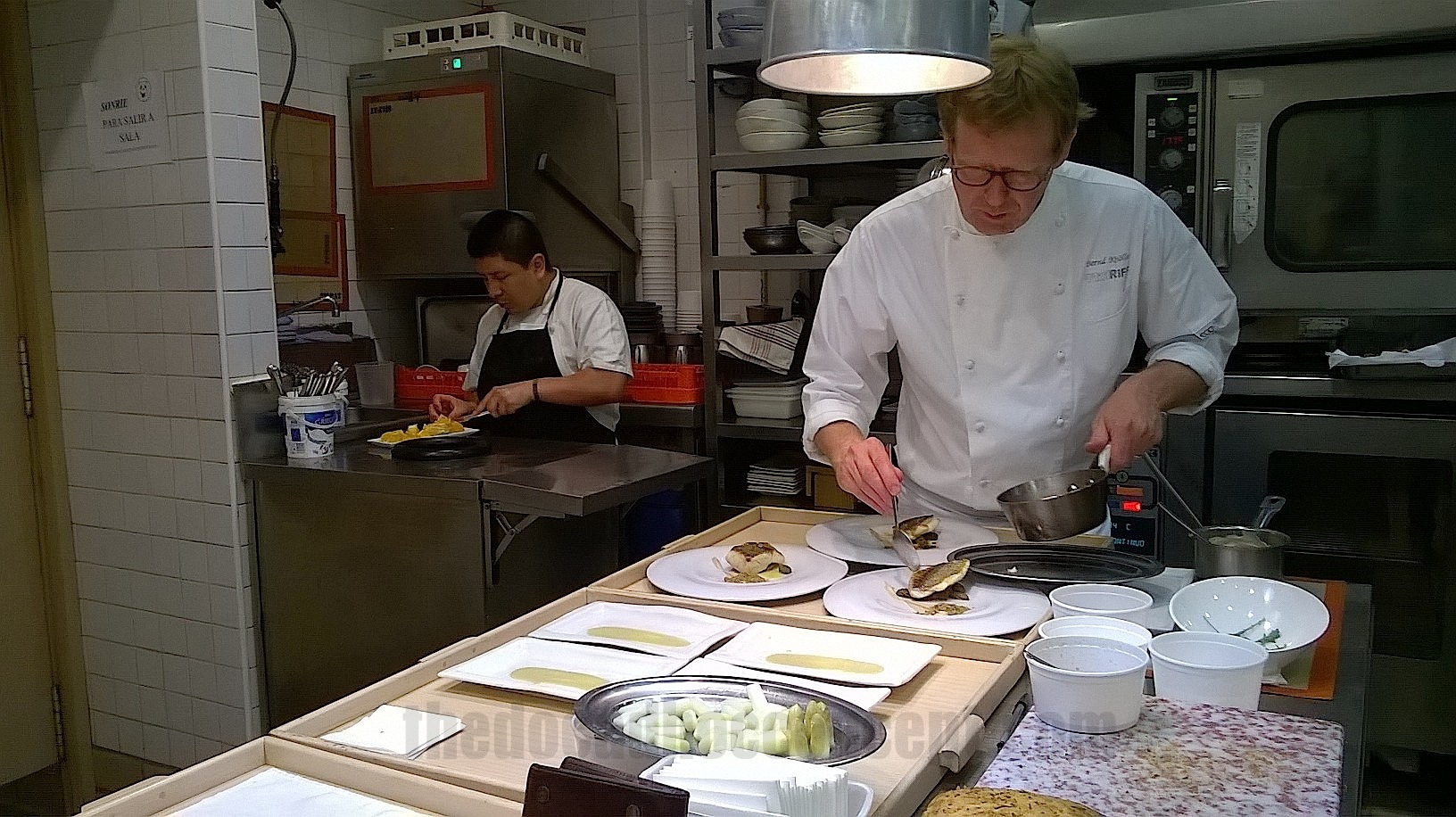 Sin querer estorbar más de la cuenta en un oficio que no es el mío, dejamos la cocina cantando bajito, como un fourrier, para que el equipo trabajase sin presión ni con los ojos de un foráneo, y amigo de Bernard, puestos en ellos. Aun así me dio algo de tiempo para retratar como se emplata de verdad.