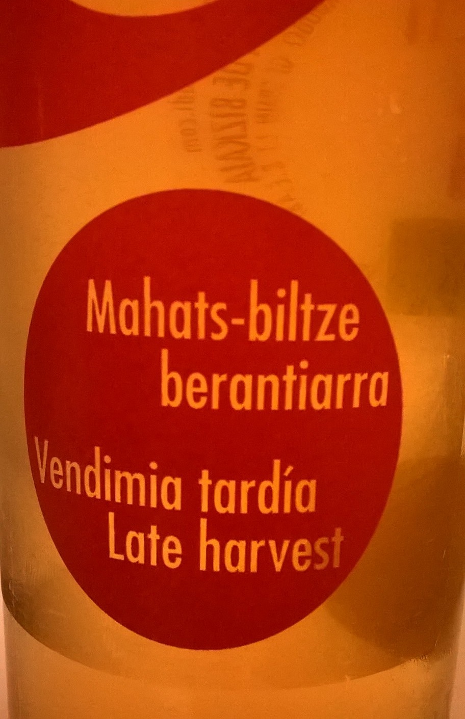 Late Harvest de HZZ y pequeño porcentaje de Izkiriot Handi (Manseng).