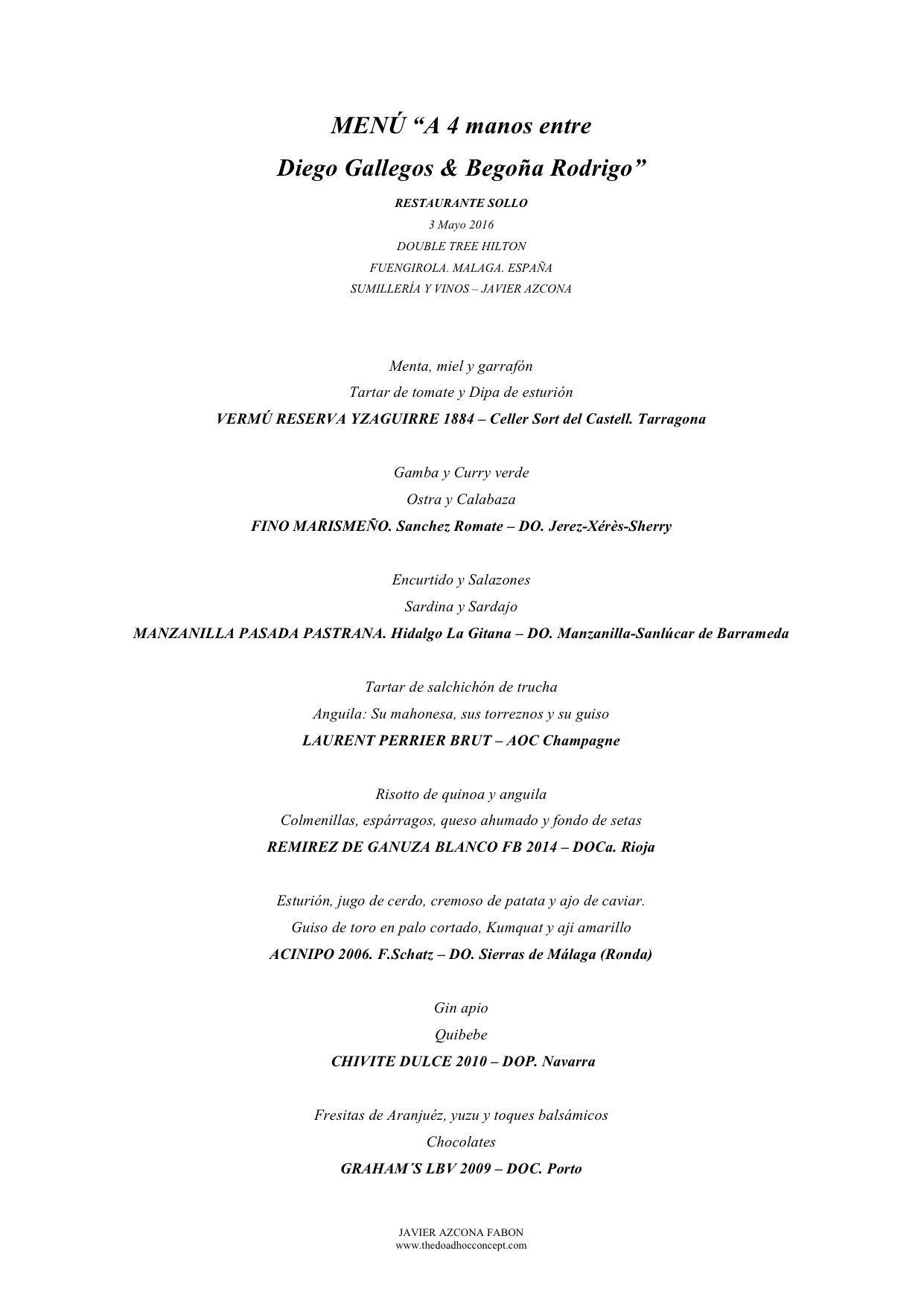 en respuesta a Abreunvinito Ver mensaje de Abreunvinito Pues ya toca conocer a Diego. Anímate con tu padre. Hay 3 menús muy adecuados en cantidad y "presupuesto". Disfrutaréis seguro. Un saludo desde MALAGA.