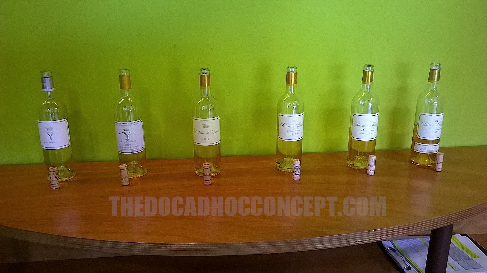 Desde 1855 encontramos un vino llamado Château d´Yquem como Grand Cru Classé en Sauternes. Son 104 hectáreas en una colina al sur de la ciudad de Bordeaux (Landas,con Barzac al Norte), donde sobremaduran las variedades Semillon (80%) y Sauvignon Blanc (20%), atacadas por el hongo de la botritis. Existe también un 2-3% de Sauvignon Gris que se ve afectado por el hongo bueno. Las variedades se vendimian de Septiembre a Noviembre, durante 5 ocasiones como media normal. Es el mejor intercambio intercelular que existe en la creación de un vino. Las 100000 botellas redondas equivalen a un vaso de vino por pie de cepa. Todos los años se arrancan unas 3 hectáreas de cepas viejas, con el fin de asedar el terreno y dejar nuevos lugares donde plantar.
