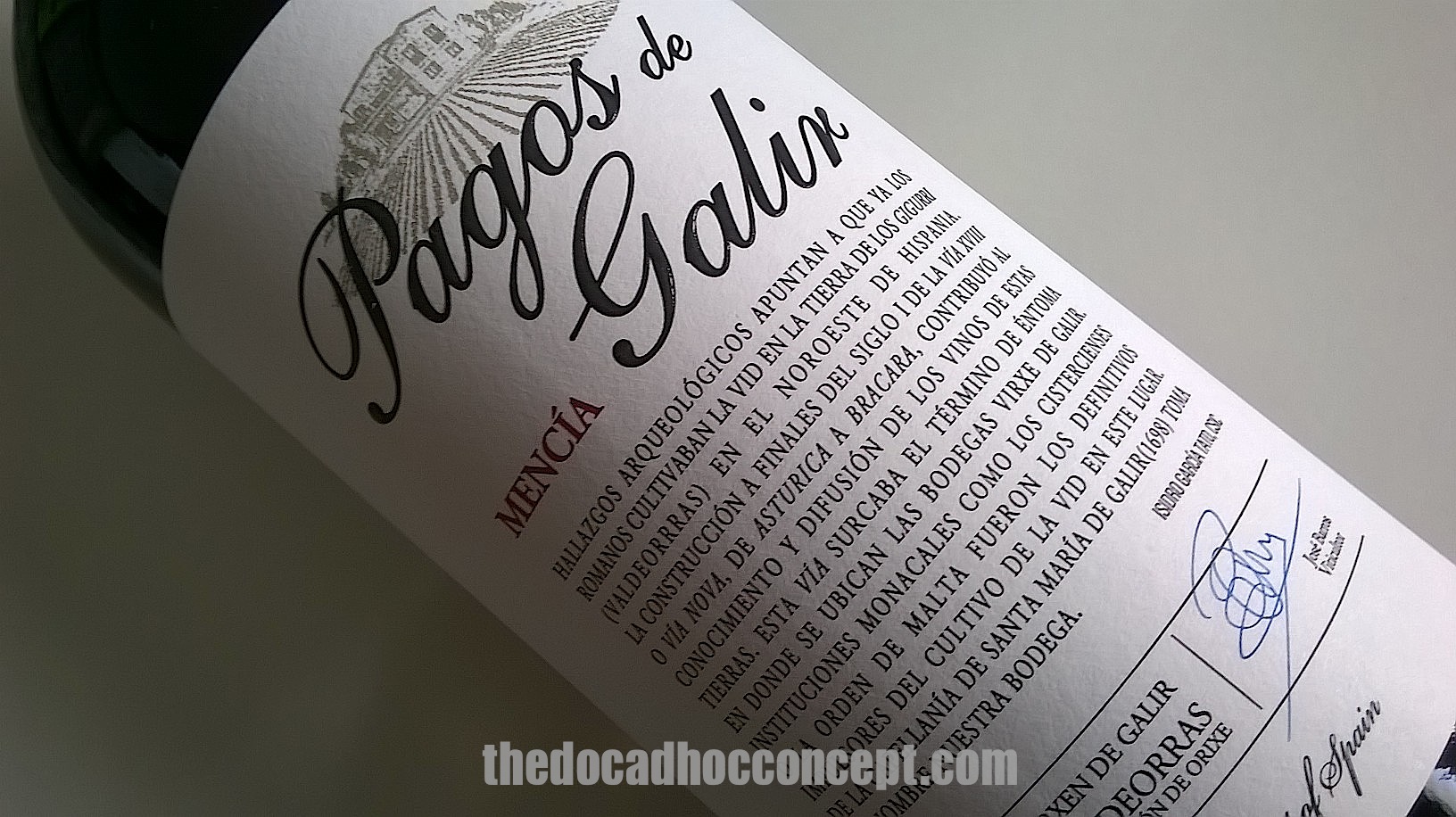 GUSTATIVA.- Ataque seco, sabroso, salino y envolvente. Acidez media. Taninos medios, alcohol un poco moderado, textura suave, medio acuoso, sabroso. Retrogusto con sabores de fruta roja (cereza y fresa), vegetales secos (algo cocidos) y roble (vainilla), con un final medio (-) y algo mineral (pizarra, cuarzo). Sabores clásicos de Mencía fresca, joven, con equilibrio de fruta y madera, aunque algo mediano, esperando algo más de “punch”.