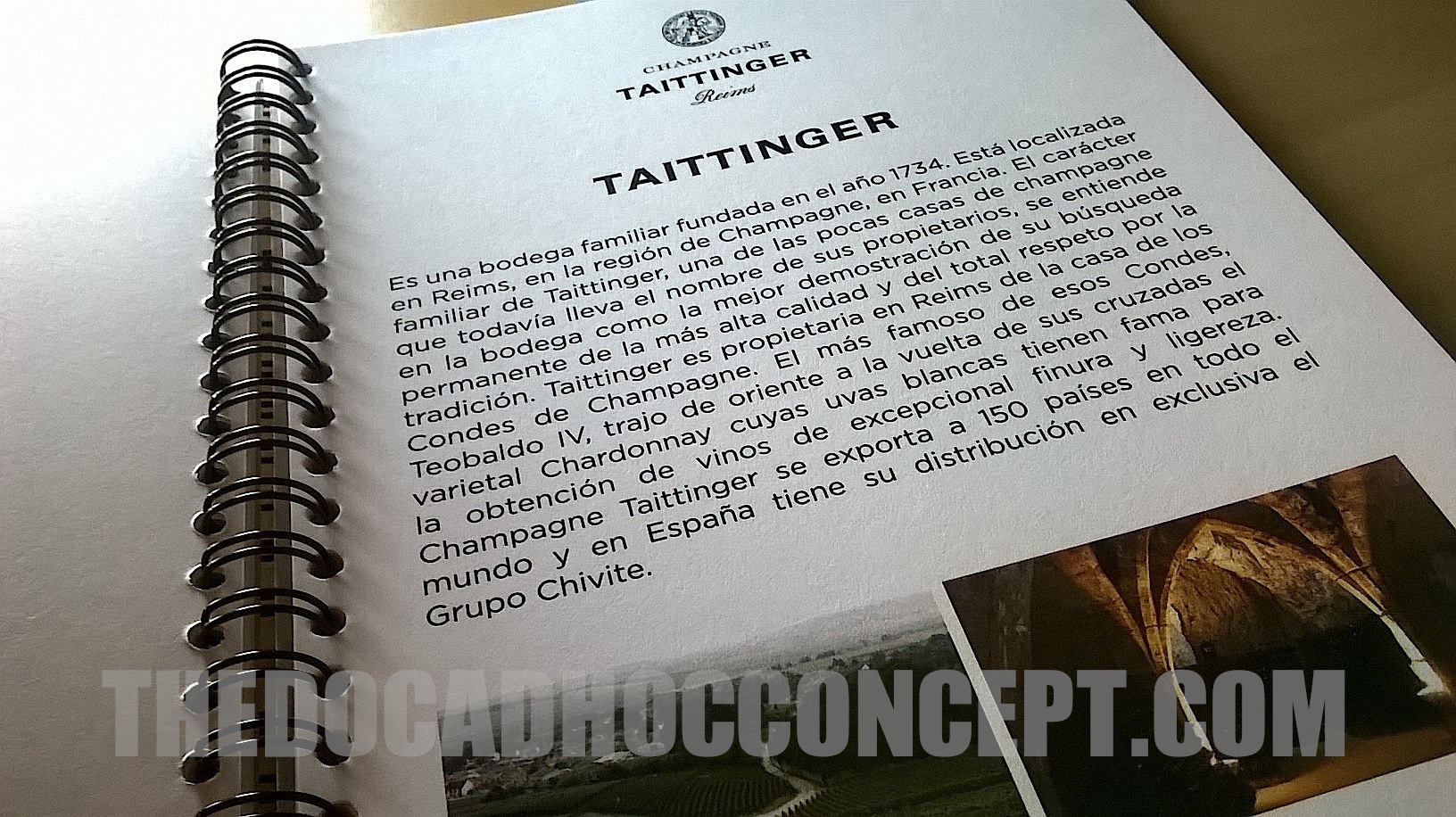 Comenzamos con las espumas de Champagne, desde La Maison Taittinger, encontramos un espumoso serio con unos 5gr/l de azúcar, con aromas de bollería, pero con más panadería fina (boulangerie). Un Chardonnay (40%) y Pinot (60%) en su momento de mejor madurez tras sus 3 años de crianza tranquila. En cata presentaba aromas a fruta (manzana), manzana asada y notas de sal. En boca, presenta una acidez alta, con salinidad y mucha fruta fresca (limón, membrillo, uvas, paraguayo).