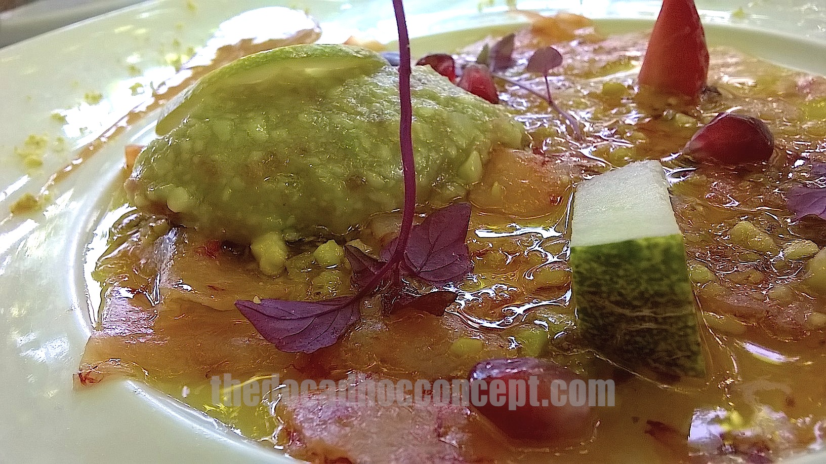 Especial sopa de pescado casera, densa y contundente, a la vez que ligera y nada pesada. Elaboración exquisita de toda la vida con mucho placer por el producto local. Carpaccio de Cigalas, pistachos y guacamole en su jardín oleoso es una gula, como el arroz meloso de mar con almejas y el Rodaballo salvaje que nos deja impresionados y con ganas de devorar todo de él, chupando las espinas, y los dedos uno por uno.