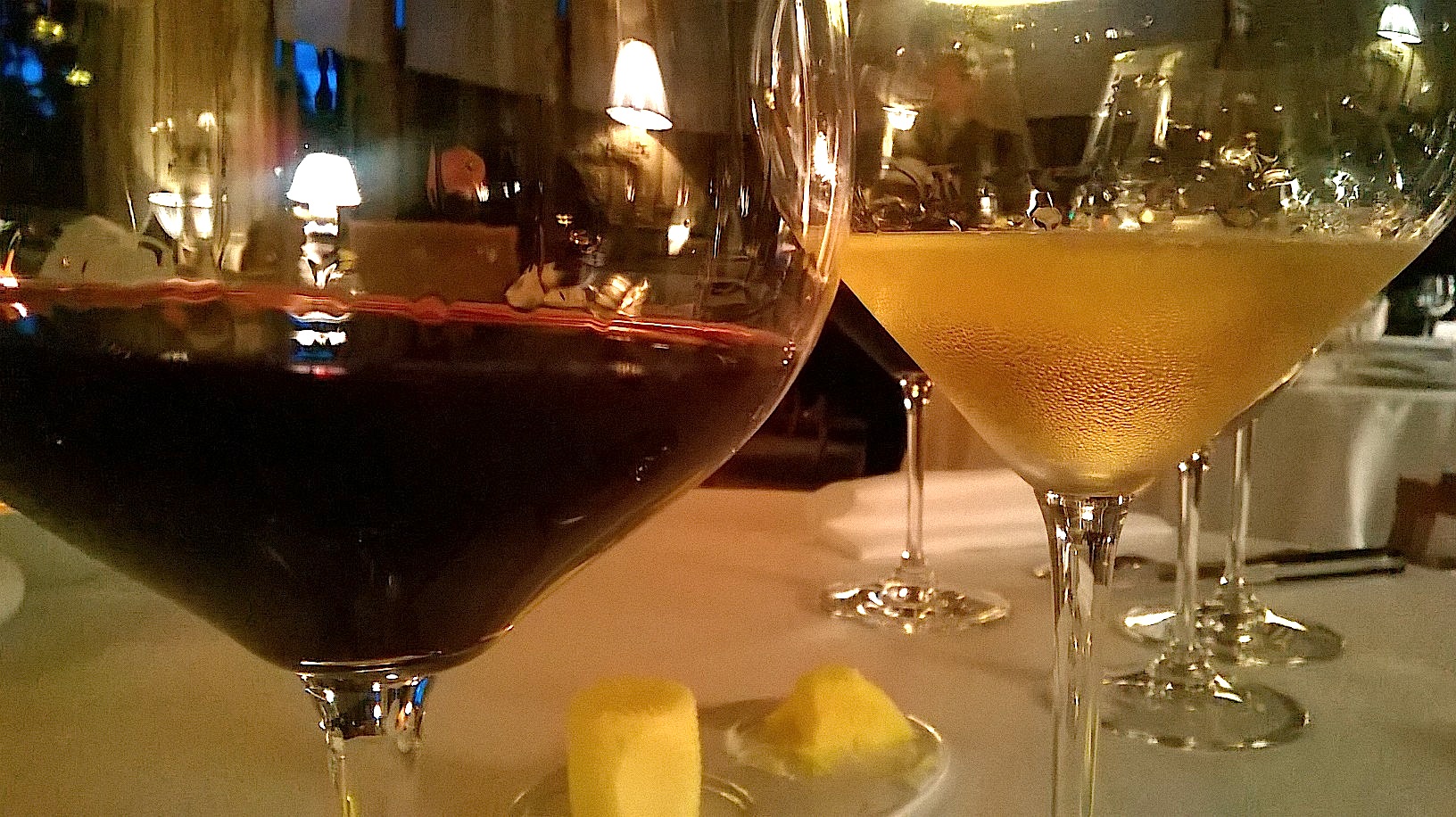 Leemos las cartas mientras nos preguntan si queremos una copa de champagne como aperitivo. La elección es Pol Roger 2008 como espumoso para la cena, para después copear con otros vinos en carne y postres.