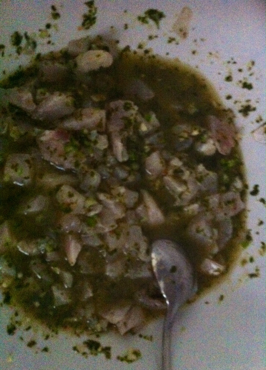 Esta mezcla se agrega al pescado y se deja en ella entre media hora y una hora, dependiendo si nos gusta más o menos crudo. Trascurrido este tiempo, está listo para comerse.