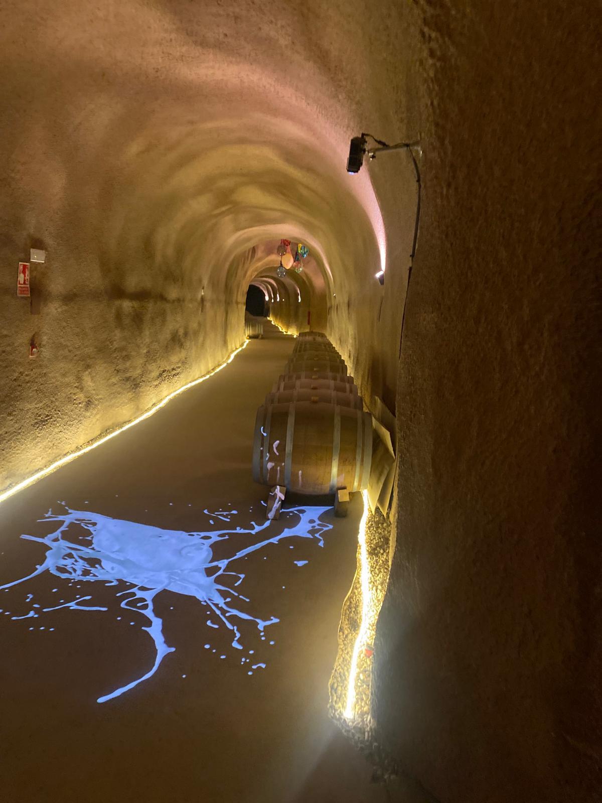 Una vez finalizada la visita de sus instalaciones, atravesamos el viñedo de Tempranillo y Malbec, para dirigirnos al túnel subterráneo. En nuestro recorrido Beatriz explica que poseen tres hectáreas de tempranillo y 1/2 hectárea de Malbec propias y 30 hectáreas controladas de viticultores de la zona. Así mismo que utilizan la viticultura ecológica, priorizando la sostenibilidad y el respeto por el medio ambiente. A continuación nos introducimos en las “raíces” , el laberinto que han creado bajo su viñedo.