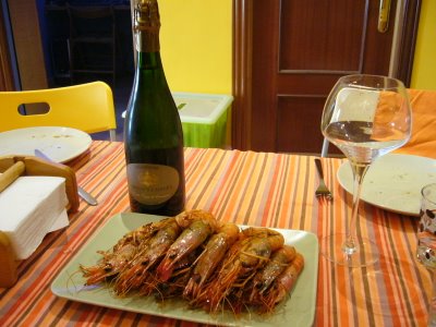 Después de los moluscos…pues unos crustáceos. Me costó encontrarlas pero hay muy pocos crustáceos mejores que las gambas rojas del litoral levantino. En este caso proceden de Almería. Unas gambas rojas enormes que sólo pueden ser preparadas a la plancha, con su punto justo de sal. Fantástico bocado marino.