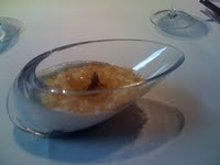 El fino sin sorpresas, siempre es una garantía, el champagne un gran vino, joven todavía, pero con un enorme equilibrio entre fuerza y fineza, el austríaco, un vino muy adecuado para este tipo de cocina, fácil de beber, curioso, muy al estilo de los productos de esta gran bodega y por último, el alsaciano respondiendo a los baremos de calidad que esperamos de un mítico elaborador como Deiss. Con su mínimo azúcar residual acompañó tanto a los pescados como a los postres.