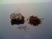 Esta es otra reciente creación del chef, un postre suplementario al menú que nos ofrecieron (y que cobraron, claro). Nos pareció espectacular, tanto la gelatina de té verde que envuelve al chocolate, como el contraste con la trufa de verano (tuber aestivum), que sí bien no tiene nada que ver con la de invierno (tuber melanosporum), sí que dejaba su personal impronta. Realmente bueno.