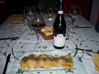 Nariz misteriosa, térrea, especiada y compleja y una boca plena, con una tremenda acidez y los poderosos taninos de la nebbiolo, pero ya con una madurez y una finura que realmente nos conquistaron. Estaba ya listo para su consumo aunque seguro que mejoraría con más tiempo en botella. Un vino de antología. ¿Y qué decir de la armonía? Un Barolo, por su marcada acidez y por el tanino feroz de la nebbiolo, es un vino para comer. Y la finura y armoniosa madurez que mostraba este Colonnello fueron sin duda un perfecto contrapunto para el plato. El térreo aroma y sabor de la trufa y la delicada textura de las patatas combinaron a la perfección con la paleta de sabores del vino. Para repetir cuando el bolsillo lo permita, claro.