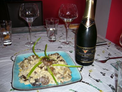 Una gran tarde sin duda alguna. Los vinos, como cabía esperar, de grandísimo nivel, cada uno en su estilo. No sabría por cual decidirme. El champagne, la manzanilla, el Mersault y el Barolo estaban en un muy buen momento de consumo, en el caso del Mersault casi que diría óptimo. El Huet estaba jóven sin duda y el de Rousseau, aunque ya se dejaba disfrutar, sin duda sería para comprar y guardar unos cuantos años mas, enamorado me dejó a mi. Y la comida que nos preparó Mercedes deliciosa. Esas albóndigas de boletus estaban impresionantes, las patatas esquisitas y el arroz rozando la perfección de un risotto. Las harmonias me parecieron muy acertadas.