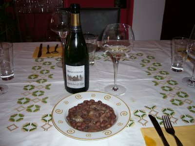 Se trata de un champagne extraordinario, de gran profundidad, cremoso, con toques de frutos secos y una excepcional acidez. Me lo descubrió ese gran especialista que es Phillipe Cesco y desde luego que ha vuelto a confirmarse como una verdadera sorpresa a pesar de que no sea un vino barato. Y la armonía con el plato fue realmente soberbia, inmejorable, parece que estaban hechos el uno para el otro. Nos preguntábamos todos: ¿y si hubiéramos cocinado una olla y comprado un doble mágnum? Igual para otro día…