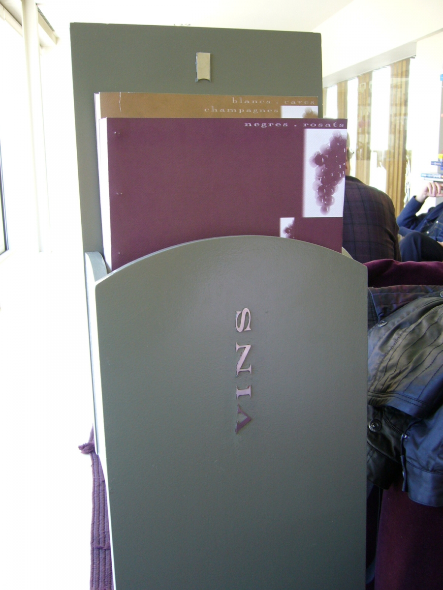 Antes de comenzar con los aperitivos le echamos un vistazo a la carta de vinos. Se presenta en un mueble-expositor y consta de dos tomos, uno de espumosos, blancos, dulces y generosos y otro de tintos. Los tomos son excesivamente grandes, en especial por superficie y pesan más de dos kilos cada uno, lo cual resulta espectacular pero hace más complicada su lectura. A nosotros nos encanta leer estas cartas y lo cierto es que no tiene desperdicio, con vinos de la máxima calidad y de todas las más importantes zonas vinícolas del mundo, incluyendo algunas verticales. Los precios son variables, encontramos vinos a precio muy razonable y otros más subidos, en fin, que nos recreamos en su lectura y anotamos una serie de vinos que preseleccionamos para la comida. Por calidad de contenido y gustos personales, pensamos que es una de las mejores cartas de España, probablemente la mejor que hemos visto junto con las de La Cigaleña y Monvinic.