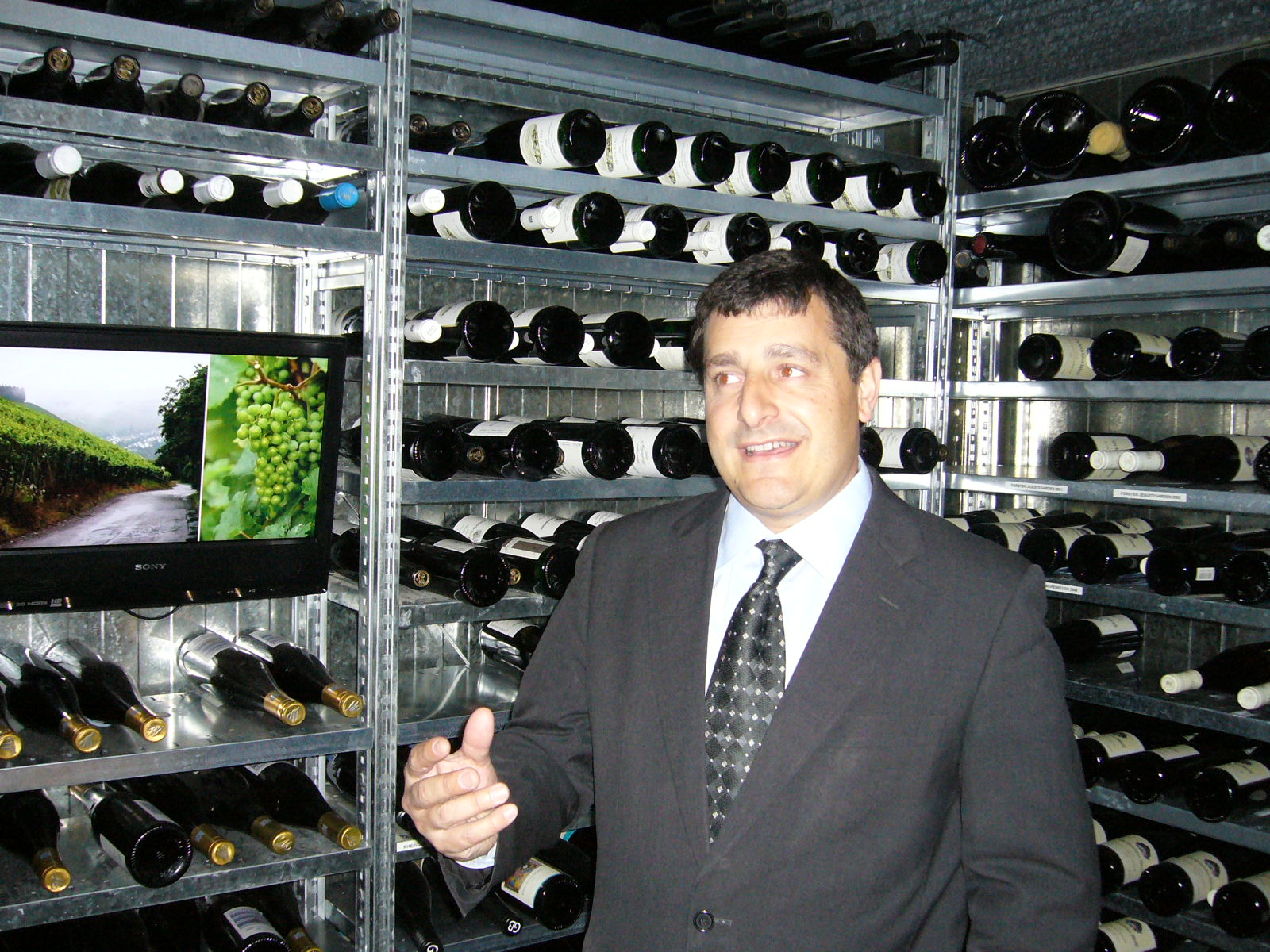 Salimos encantados de la cocina y Josep Roca, el camarero de vinos (cambrer de vins) como le gusta llamarse a él mismo, nos espera en la puerta de la bodega. Este es un espacio diáfano, recubierto en su parte exterior con maderas de cajas de vinos. En el interior destacan cinco espacios, que representan a cada una de las cinco zonas vinícolas preferidas por Josep a nivel mundial, que son Champagne, Riesling alemán, Borgoña, Priorato y Jerez. En cada uno de los cubículos se nos proyecta un video con preciosas fotografías e imágenes de sus zonas, con una música de fondo escogida y un símbolo que los identifique, en este caso unas bolas de acero en Champagne que representan a las burbujas, un pañuelo de seda en el riesling, unos saquitos de tierra en Borgoña, una pieza de licorella en Priorato y una de esparto y caliza (albero) en Jerez. Mientras suena la música, Pitu habla de lo que cada una de las zonas le transmite, y lo hace con un dominio de las pausas, con una pasión, con una forma de sentirlo y de expresarlo, que te acaba introduciendo en su mundo e inevitablemente pasas a formar parte de él. Quienes me conocen saben que no soy una persona precisamente emocional y que expresa fácilmente sus sentimientos, pero especialmente con sus exposiciones sobre Borgoña y Jerez, cuando en esta última, sonando flamenco de fondo, Pitu nos habla de sus orígenes en un barrio obrero y humilde de Gerona, de cómo le viene su pasión por los vinos tradicionales andaluces a través de la inmigración de la zona, tuvimos que hacer verdaderos esfuerzos para no soltar una lágrima. Y preguntando después a nuestros compañeros, todos estábamos sintiendo lo mismo. Es amor al vino, pasión por el vino, y para comprenderlo no hace falta ser aficionado, solamente con un mínimo de sensibilidad es suficiente. Uno de esos momentos especiales que nos guardamos para nosotros mismos. Es cierto que Pitu enseña su bodega a varias personas al día, que a todos les muestra la misma exposición, pero se sabe cuando una persona actúa y cuando sobreactúa, y la sensación que te transmite es la de alguien que de verdad tiene verdadera devoción por el vino. Ante personas como Pitu nos sentimos pequeños, pero abrimos las orejas y los ojos, porque de estas son las personas de las que tenemos que mucho que aprender. Además de todo esto, la bodega, con 30.000 botellas y más de 1.500 referencias, es una de las mejores del mundo.
