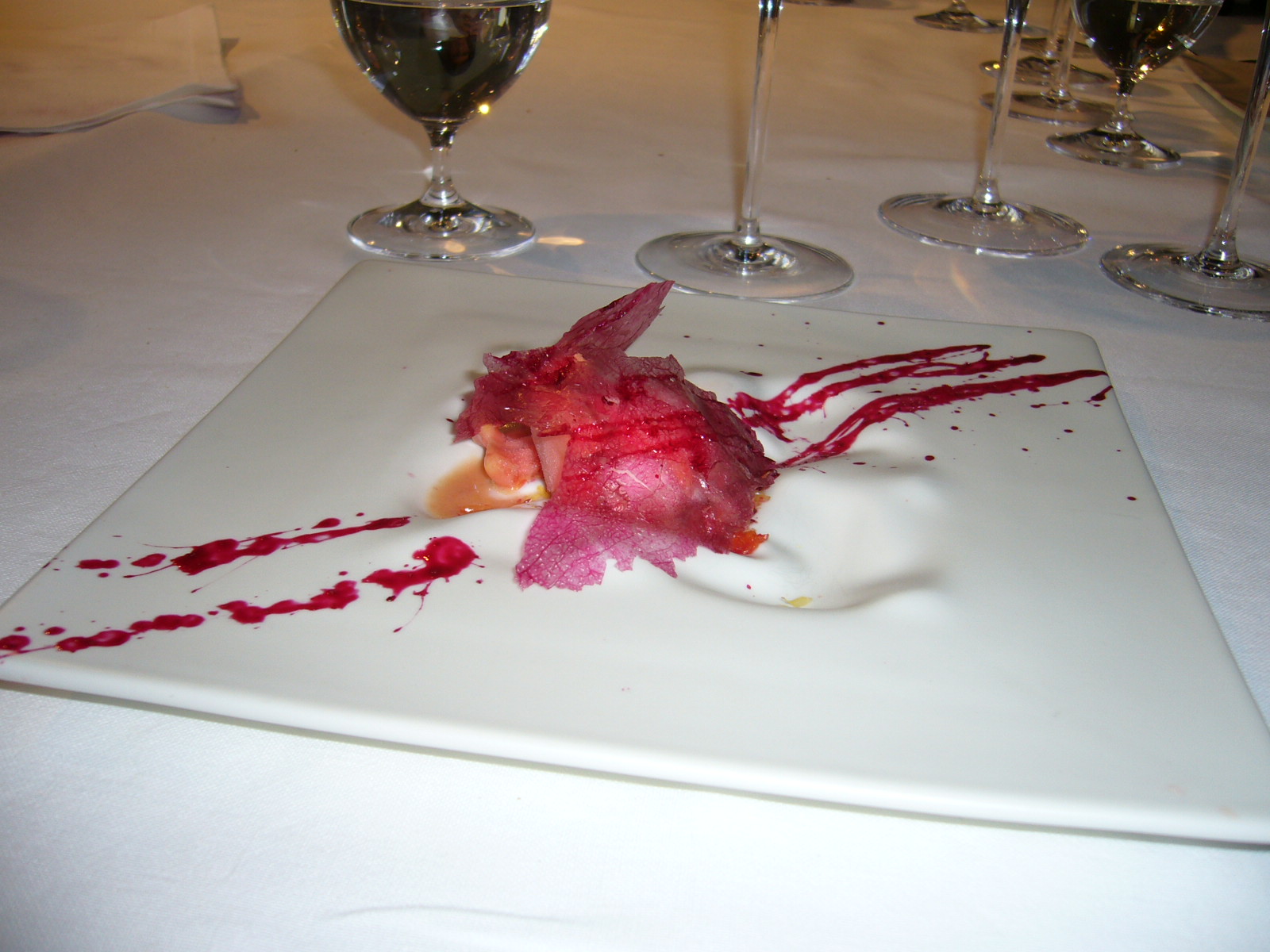 Con respecto a los vinos si te digo la verdad no había probado ninguno de los 11 que bebimos. Conocía a todos los productores, había probado el mismo vino pero de otras añadas (Recaredo, Dom Ruinart, Kastanienbusch, La Grange des Peres, Breuer) y de otros había probado otros vinos del productor (Ganevat, Scavino, Gauby, Raveneau). Con esto quiero decirte que para mí sí que hubo lugar a la sorpresa, pero ten en cuenta que había que elegir el vino no ya pensando en mí, sino en las otras 8 personas que nos acompañaban. Había que elegir vinos originales, distintos, de gran calidad y bien de precio y creo que todos cumplieron con lo previsto. Además fueron consensuados con Pitu que dio su visto bueno y sugirió alguno como los dos últimos tintos.
