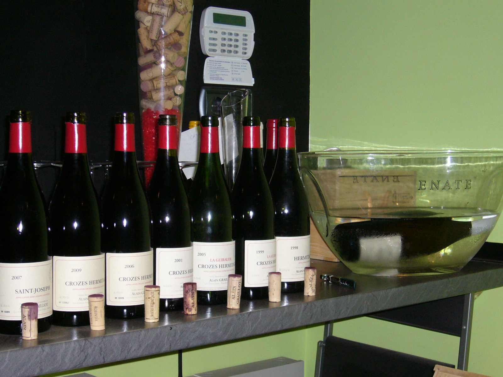 Su secreto en la viña y en las elaboraciones es básicamente…que no tiene secretos. Alain es un creyente del trabajo en viña, de los rendimientos bajos, intenta vendimiar lo más tarde posible sin entrar en sobremaduraciones, no utiliza herbicidas ni levaduras seleccionadas ni entra en terrenos biológicos ni biodinámicos, es digamos, un hombre fiel a unos principios de respeto a la viña y a la tierra que tampoco se complica en las vinificaciones, utilizando depósitos de hormigón y maderas de varias edades, dando lugar a vinos de graduaciones alcohólicas bastante bajas y con un absoluto protagonismo de la fruta con respecto a la madera. La cata en sí fue muy completa ya que probamos un buen número de vinos cubriendo toda su gama y varias añadas de diferentes tipologías, así que sin más dilación vamos a comentar los vinos.