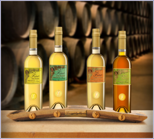 Las palmas no son más que un sistema de clasificación de los finos por calidad y vejez, algo parecido a los cortados en los olorosos. Los vinos de esta colección proceden de la solera de fino amontillado (Viña AB) que se rocía con el propio Tío Pepe. Presentados en botellas de 0,50 litros, cada uno está etiquetado con su categoría de una, dos, tres y cuatro palmas. Es importante reseñar que hay dos pasos para elaborar un amontillado, el primero es utilizando un segundo encabezamiento por encima de los 15º que “mata” la flor y de ese modo se inicia la crianza oxidativa y el segundo consiste en dejar que la flor vaya muriendo poco a poco por la falta de nutrientes y la fase oxidativa vaya surgiendo con lentitud. Esta segunda es la forma que González-Byass utiliza y fundamental para comprender lo que son las palmas y el tipo de vinos que nos vamos a encontrar.