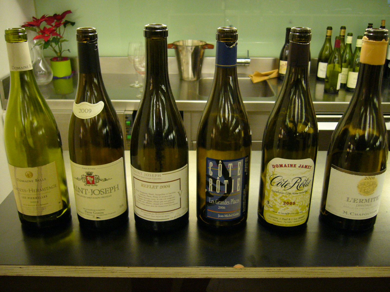 El vino a catar fue un Domaine Belle Les Pierrelles 2009. Domaine familiar situado en la villa de Larnage que cultivan 18 has de viñedo. Fueron miembros de la cooperativa de Tain-Hermitage hasta que en 1988 deciden vinificar por su cuenta. Los viñedos de Les Pierrelles están localizados debajo de Hermitage y los suelos tienen mayor componente calcáreo y granítico. Las viñas tienen unos 25 años y la crianza es de 15 meses, con un 25% de maderas nuevas. Se trata de un buen ejemplar de vino de su zona, no engaña en nariz donde muestra las características que esperamos, aunque en boca sí que nos deja un poco más fríos pues acusa un tanto la añada cálida resultando demasiado voluminoso en el final, donde se muestra más ancho que largo, algo que siempre penaliza. Habría que probar otras añadas pues parece que el vino tiene nivel, aunque nos parece un escalón por debajo de los vinos de los productores citados anteriormente de los cuales hemos catado recientemente unos 2009 francamente superiores.