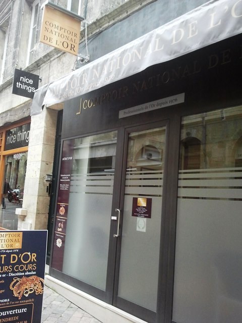 Me ha llamado la atención este año ver una tienda de venta de oro en Burdeos. Las que he visto en Madrid (han aparecido muchas, una pena, son por lastima el mejor reflejo de la crisis) son muy feas y con estilo cutre como se dice aquí.