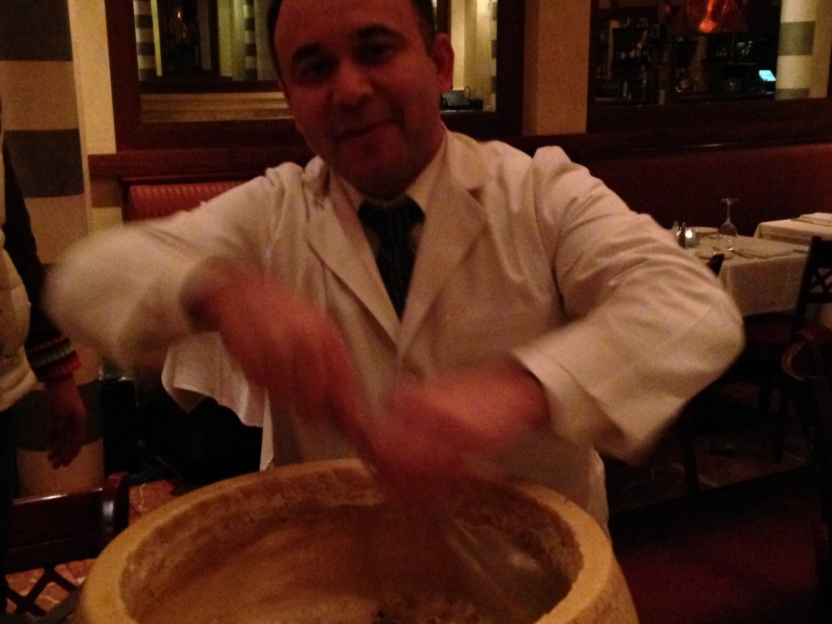 Ya por la noche mejoraron las cosas, enfilamos a Primi Piatti, otro restaurante italiano de aspecto vetusto, que nos remonta a los restaurantes donde se podía encontrar a la mafia en los treintas, o por lo menos da la idea de lo que fueron aquellos lugares con tanta personalidad de antaño, sin llegar a ser cutre, sino de un ambiente tranquilo y agradable. Ubicado en la calle Primera (NW) # 2013, atendidos espléndidamente por Aristides, sin tilde en la "i", nombre de origen griego, según nos cuenta él mismo. Ha llevado junto a nuestra mesa lo que parece ser la cáscara de un gigantesco queso parmesano, que hace de recipiente para dar los últimos toques a la pasta, detalle original que no había visto jamás. Mi hija la menor ha hecho gala de sus dotes culinarios al ayudar a Aristides (sin tilde en la "i") en la maniobra. El vino elegido para la ocasión, hacía mucho tiempo que no lo veía en las cartas, se trata de un Pio Cesare Dolcetto d´Alba 2012, cuyo precio no rebasó los 35 dólares, algo que me parece bastante comedido para los estándares de un restaurante en la capital del Imperio Yankee. Se trata de un vino concentrado de exquisita acidez y tanino, de buen paso y notas de fruta negra. Repetible y si es con pasta con salsa de tomate ¡mejor!