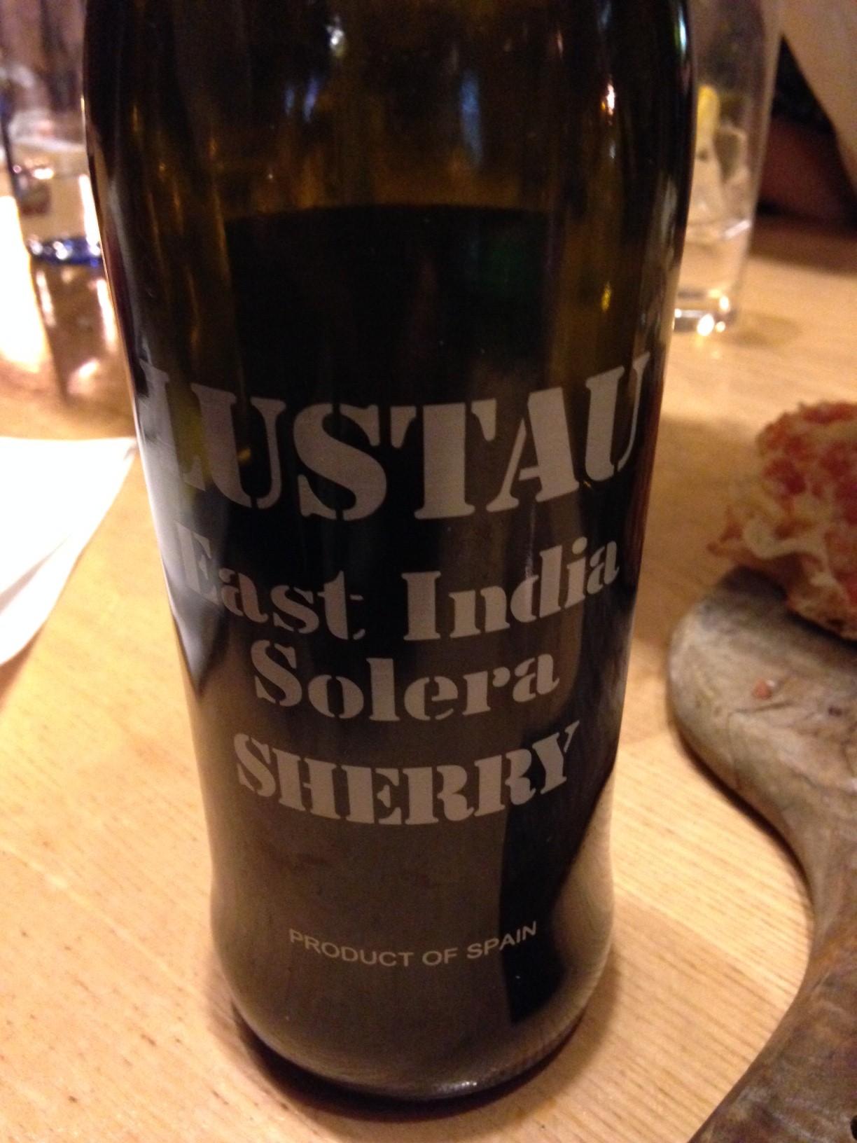 Ya por la noche llegamos a nuestra última parada, a conocer "El Jaleo" un restaurante para gente joven, relajado e informal, sin dejar de lado algunos detalles que lo hacen acogedor, algo que me llamó la atención; un hueco en la parte inferior del muro divisorio entre los servicios de caballeros y de damas, es decir había paso entre los dos sitios, si alguien se quisiera aventurar a rastras y pasar por debajo... El menú es a base de tapas, tapas poco generosas, así que justo es pedir por lo menos tres por persona. Recomiendo la ensalada Campera, el pan con tomate y la merluza. Me han contado que parte de los vinos los adquirieron en una subasta del Bulli, he revisado y tienen algunas cosas interesantes, pero a precios astronómicos, como un Borsao Tres Picos Garnacha, 2011 en... no sé si contarlo... $40 verdes. Lo he pedido ya que me gusta y era de los más económicos. De postre he bebido un Lustau East India Solera Sherry, bastante concentrado y sabroso. Un lugar que me parece no recomendaría. Fuera de los vinos, la comida no es tan cara.
