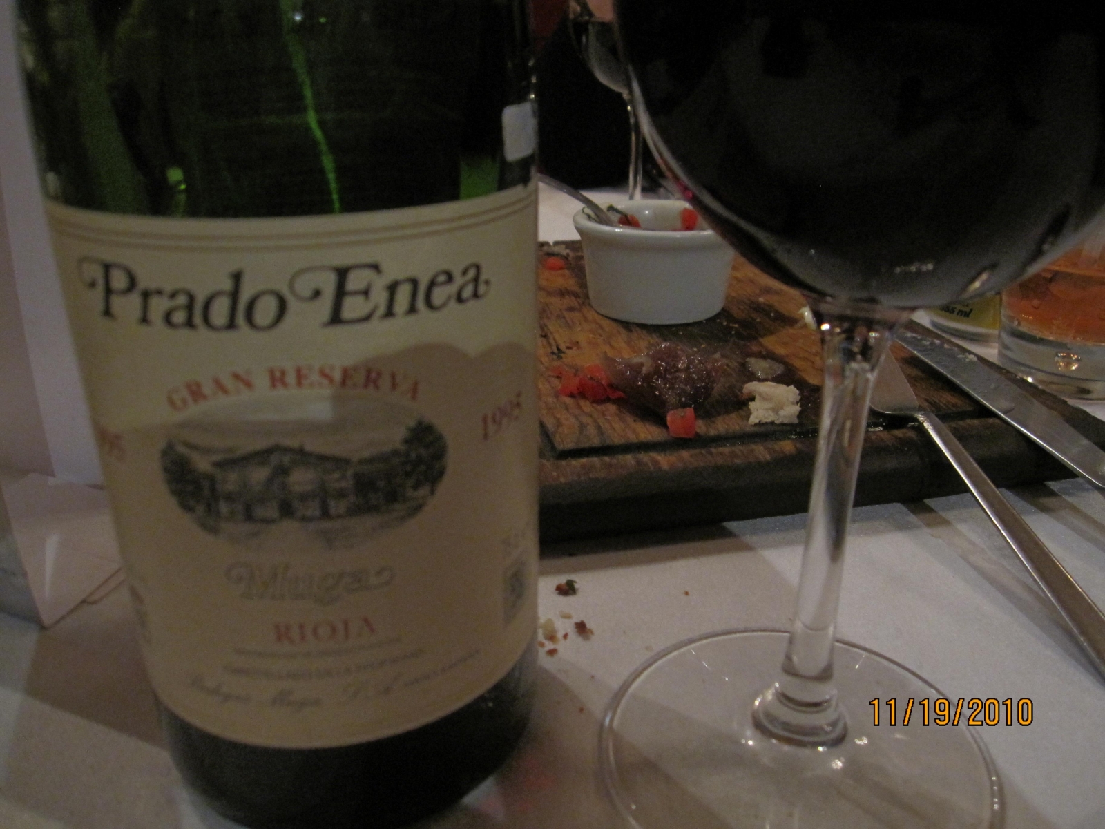 Nunca me he preocupado mucho por el maridaje, la mayor parte de las comidas con vino, lo escojo primero para después pasar al menú. El viernes por la noche salí a cenar con la familia y un amigo a un restaurante, donde me acordé que me habían aconsejado pedir la pizza de anchoas. Dentro de la carta, en la lista de pizzas no aparecía. Así que hablé por teléfono a quien me recomendó la pizza. "No, esa pizza no aparece en el menú, pero pide que te la preparen". Así que sin perder más tiempo pedí que la prepararan y la metieran al horno. Nunca me detuve a pensar que las anchoas no habían sido nunca de mi agrado, desde que tengo uso de razón... por qué me iban a gustar ahora en una pizza. Tal vez la elocuencia de mi amigo a la hora de referirse a la pizza de anchoas me hizo perder de vista ese "pequeño" detalle. Para completar la penosa escena había llevado en mi bolsita de neopreno un Prado Enea Gran Reserva 1995. No sin antes pedir una copita de blanco, un chardonnay de Ramirana, si no mal recuerdo. Alcohólico y amargo, además de caro.